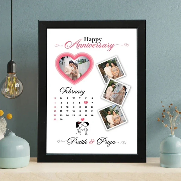 Personalized Calendar Collage Wall Mount Rectangular Photo Frame with Photo Upload, Customized Spotify Song and QR Code for Valentine's Day, Birthday, Wedding Gifts