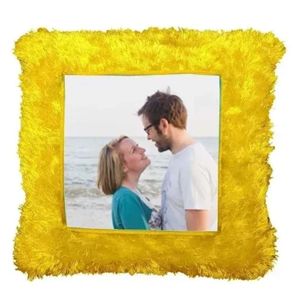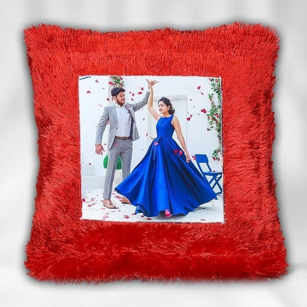 Personalized Square Fur Cushion with Customized Photo/Image - Decorative Pillow for Home, Gift Idea, Wedding Anniversery Gift, Valentines Day
